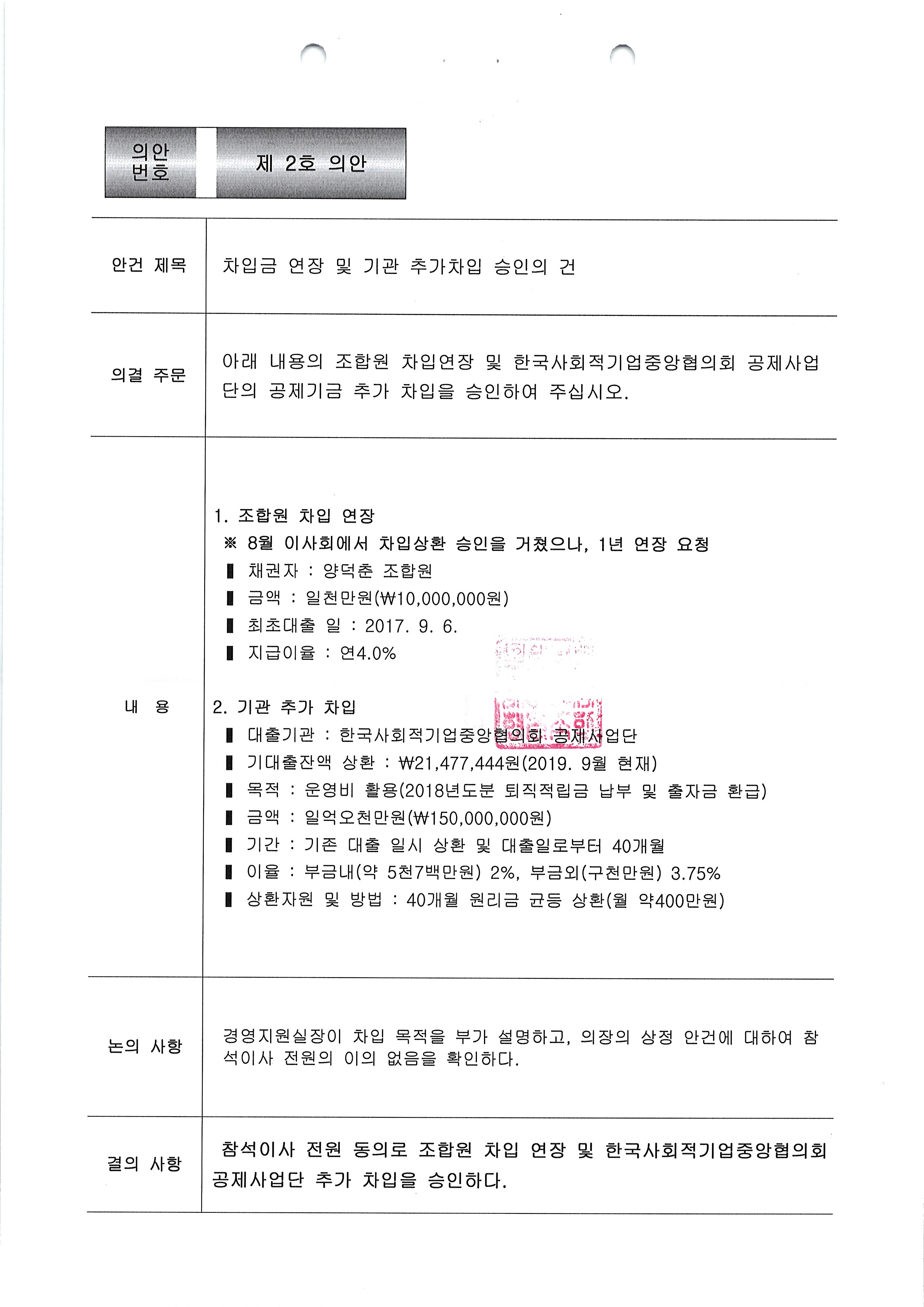 [2019-10] 정기이사회 결과보고