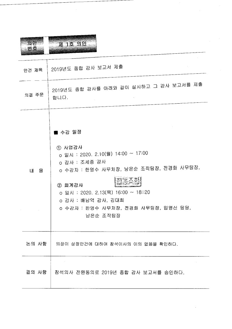 [2020-01] 임시이사회 결과보고