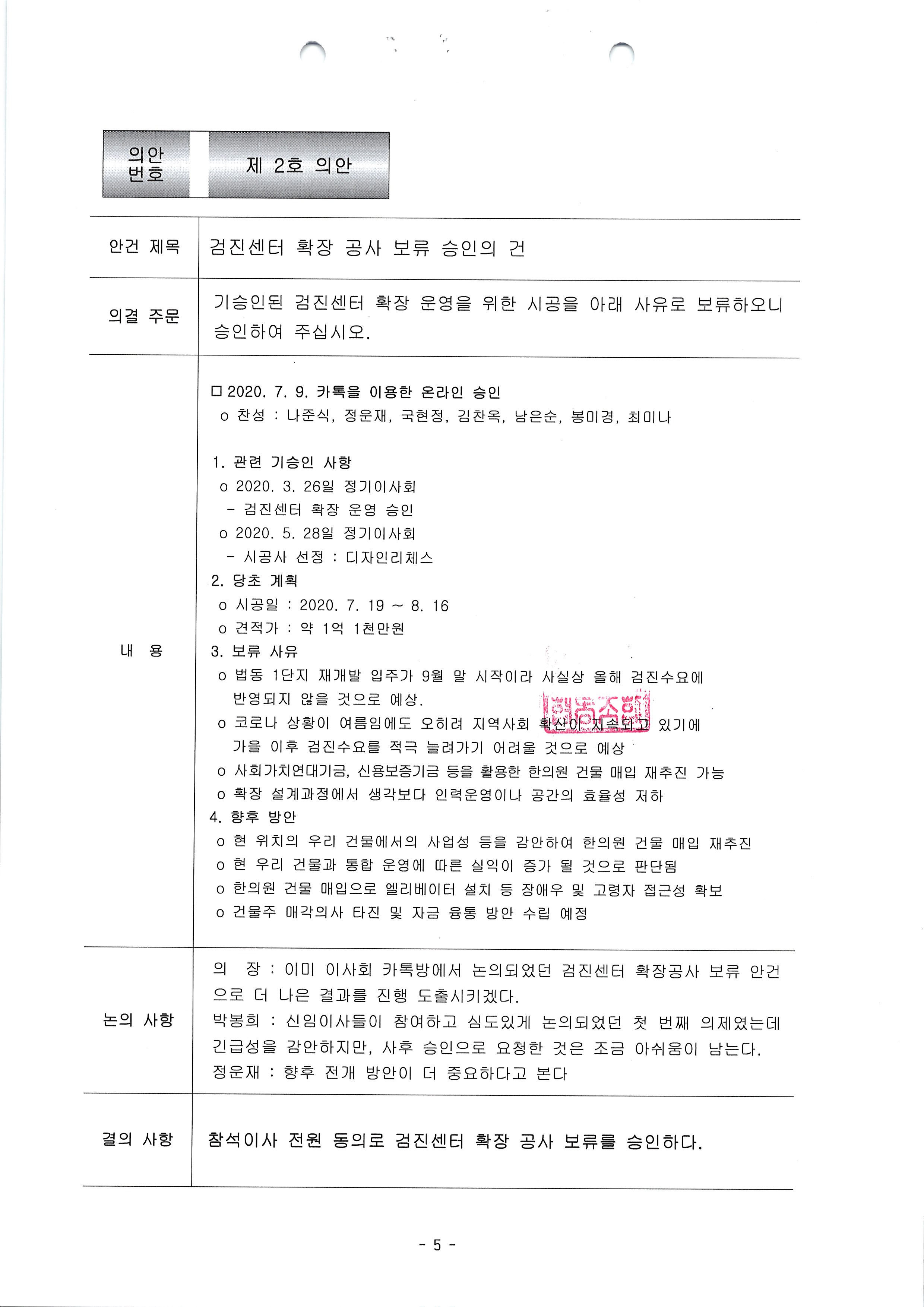 [2020-07] 정기이사회 결과보고