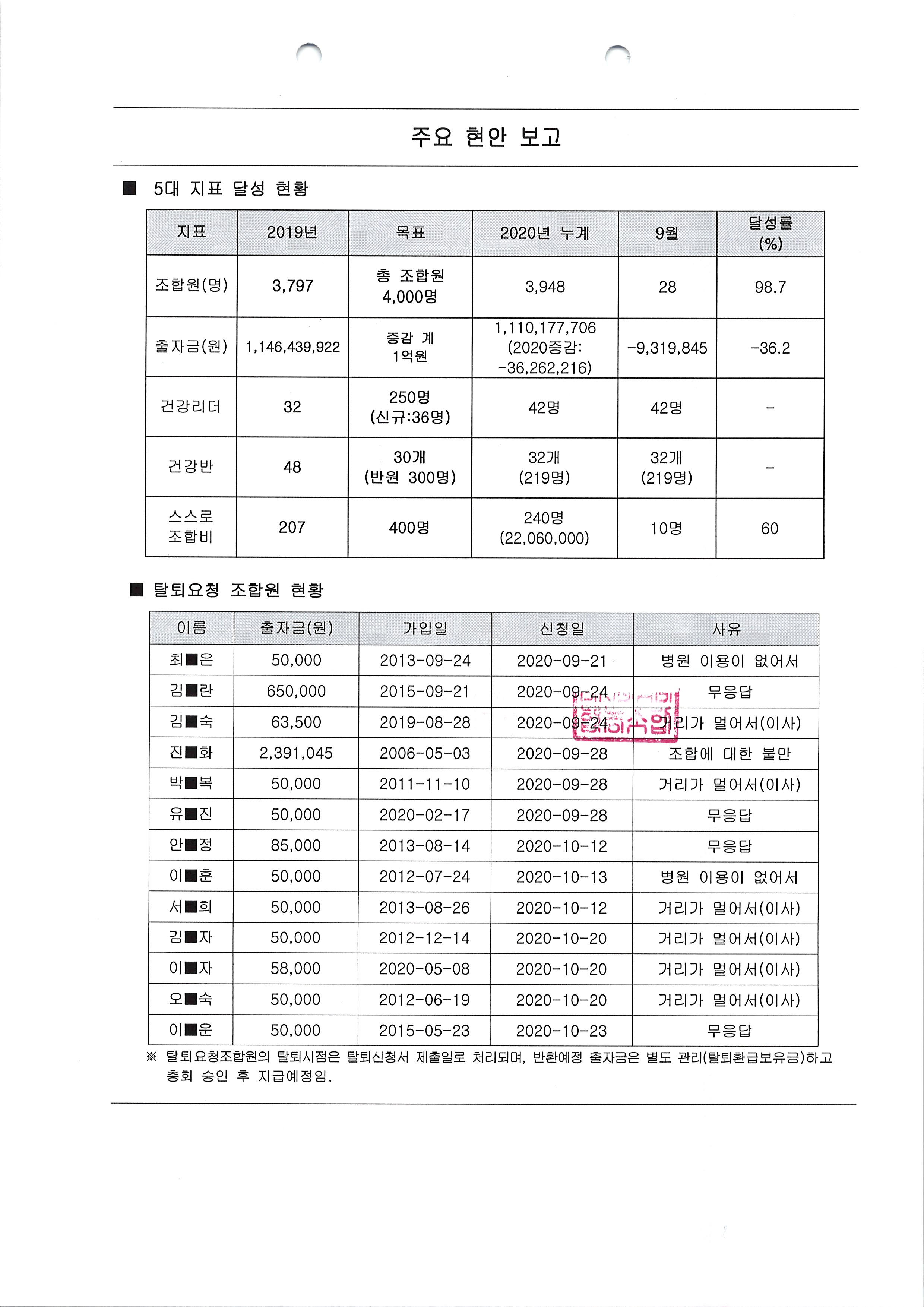 탈퇴 및 출자금반환 신청