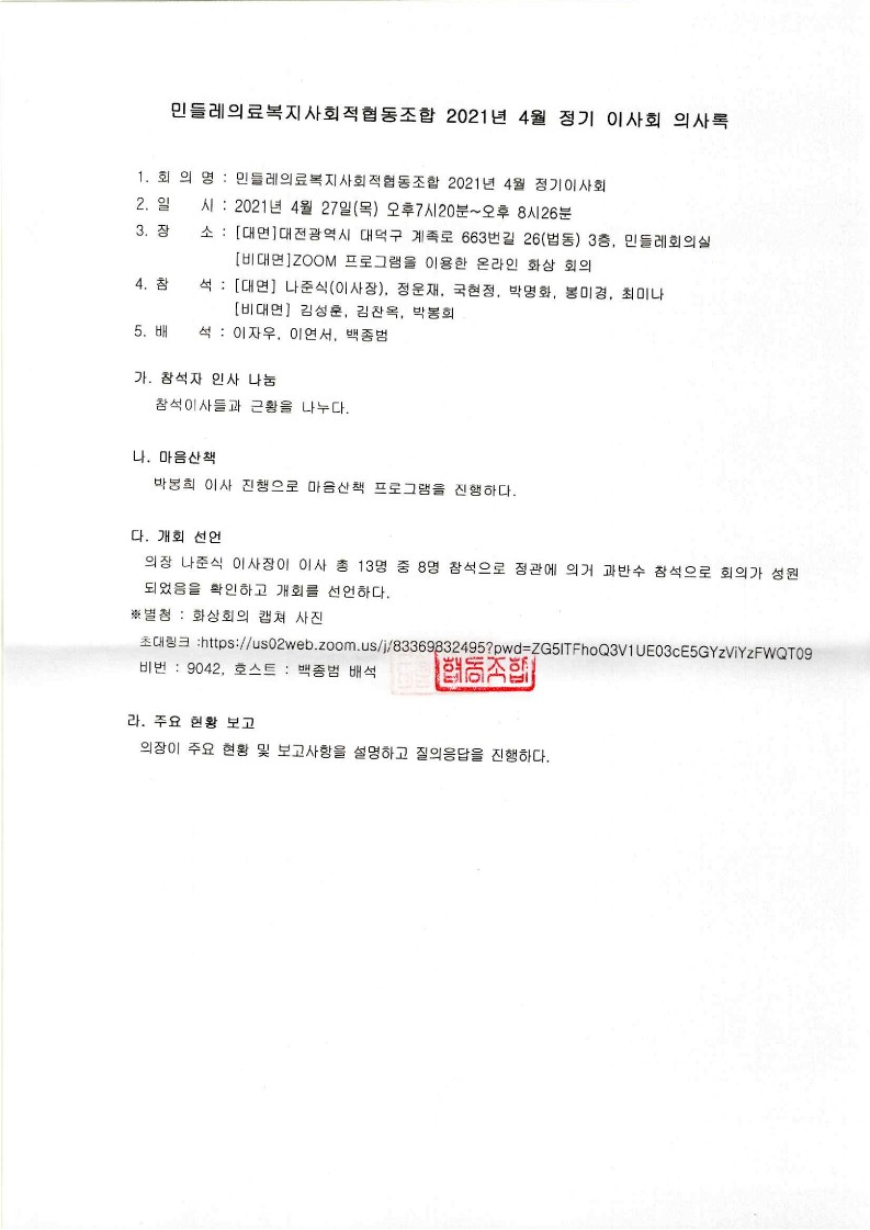 [2021-04] 정기이사회 결과보고