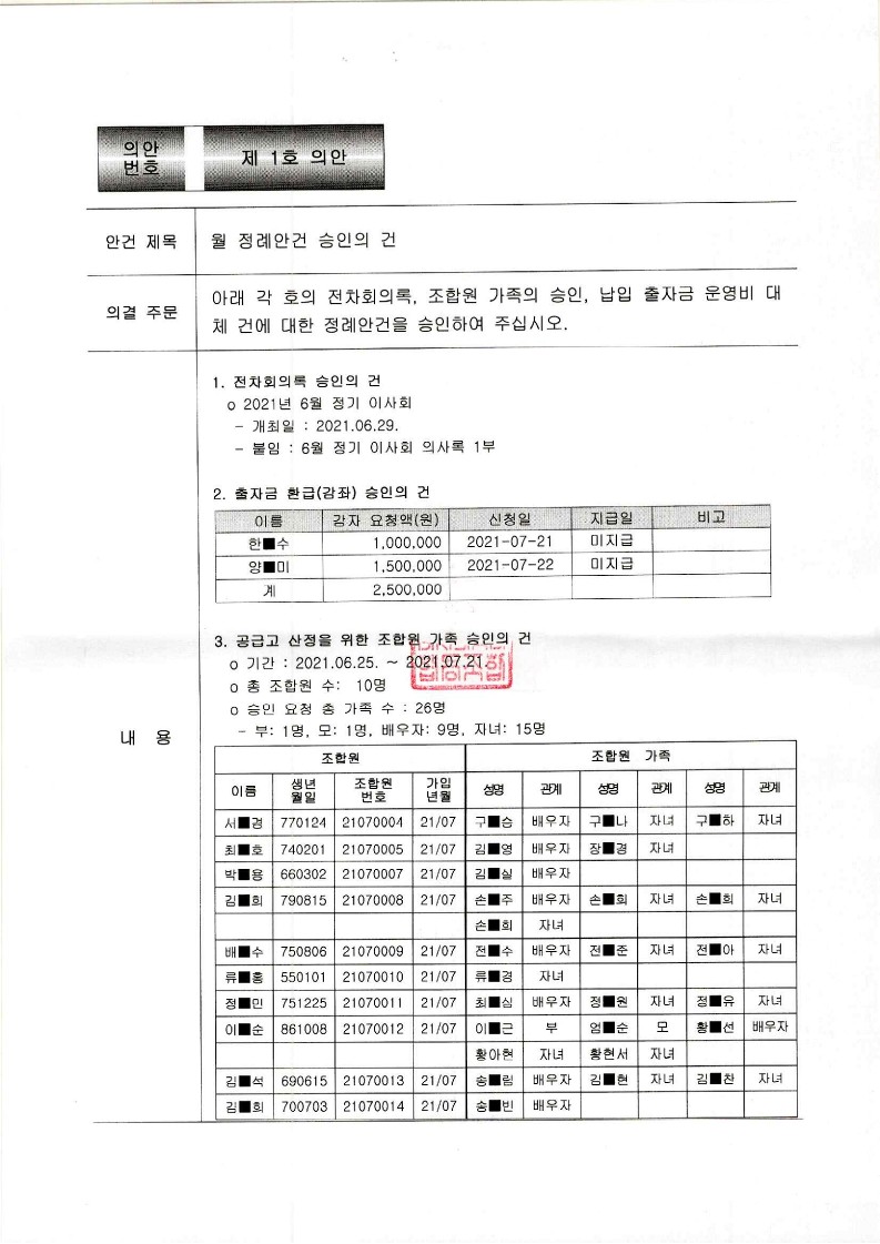 [2021-06] 정기이사회 결과보고