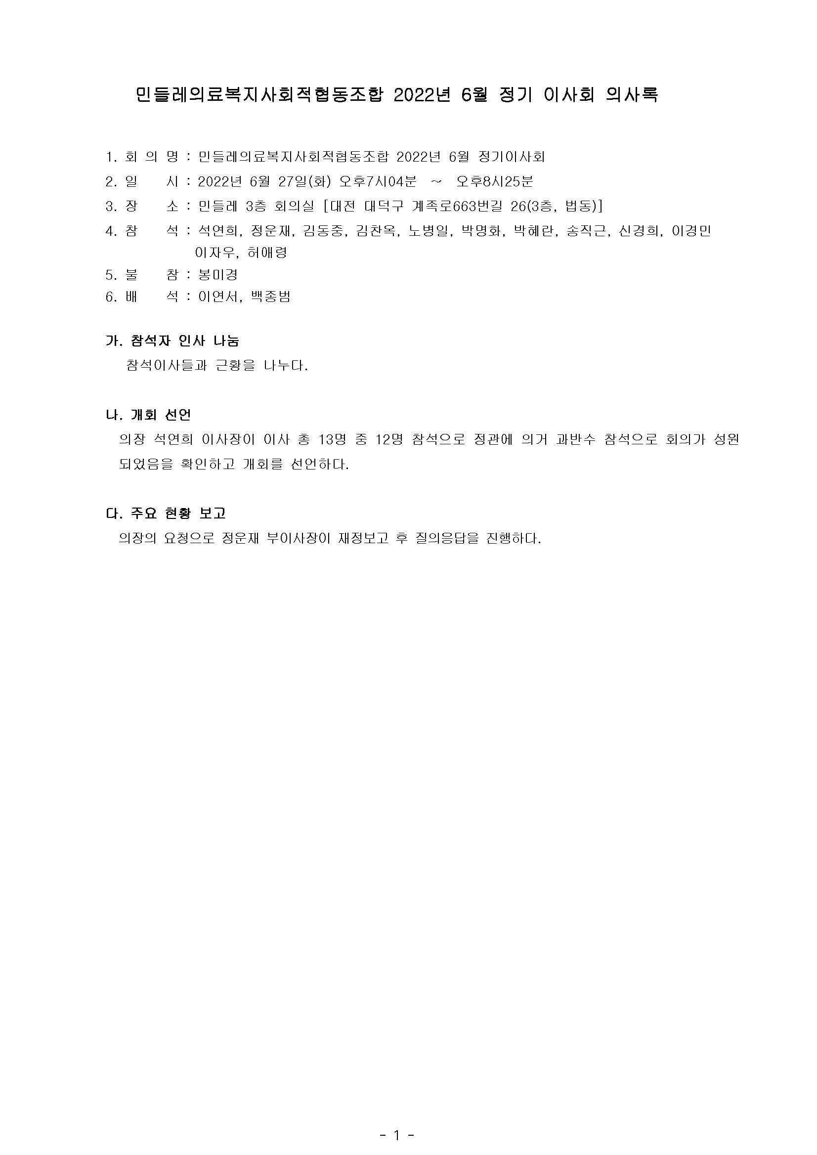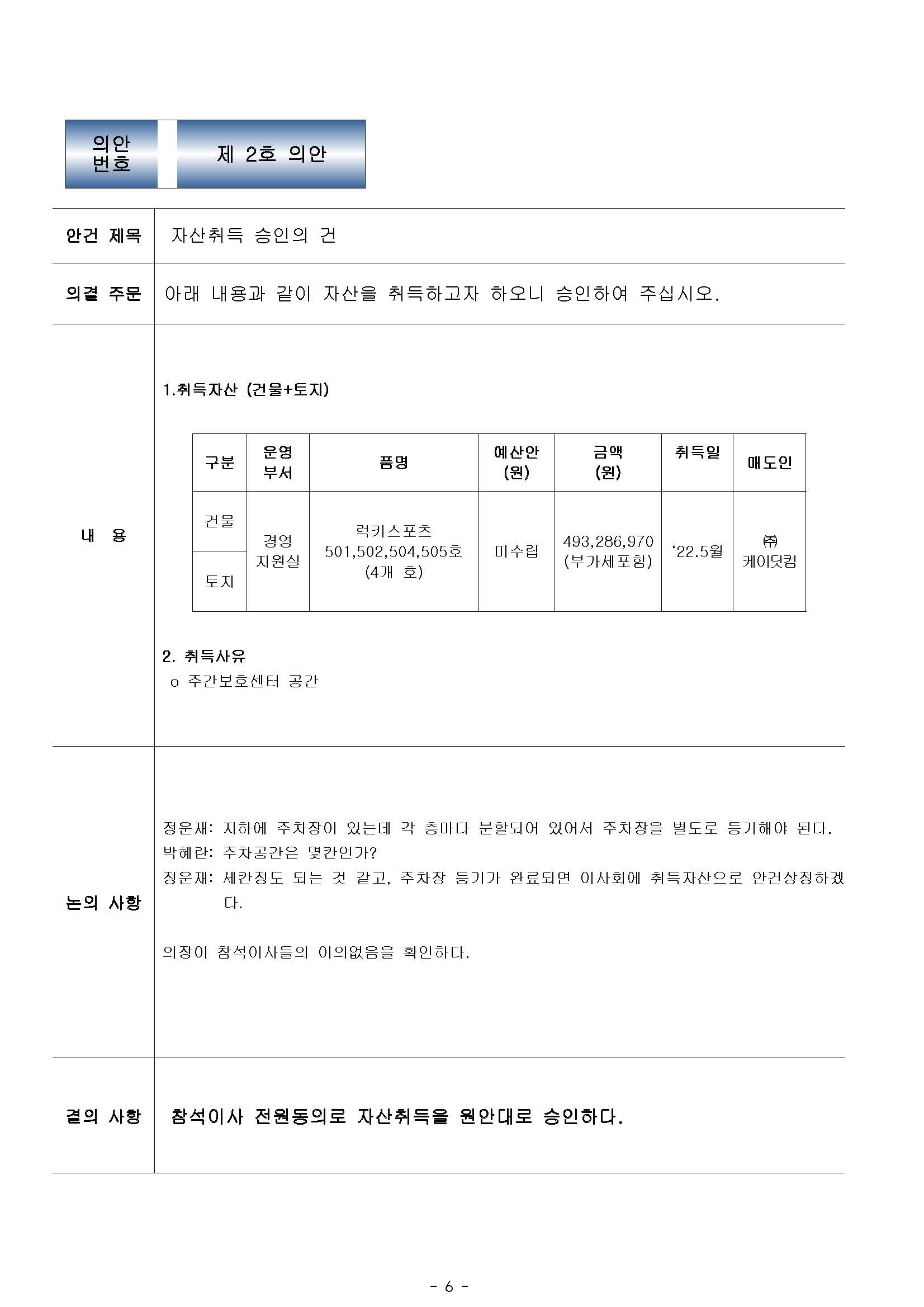 [2022-06] 정기이사회 결과보고