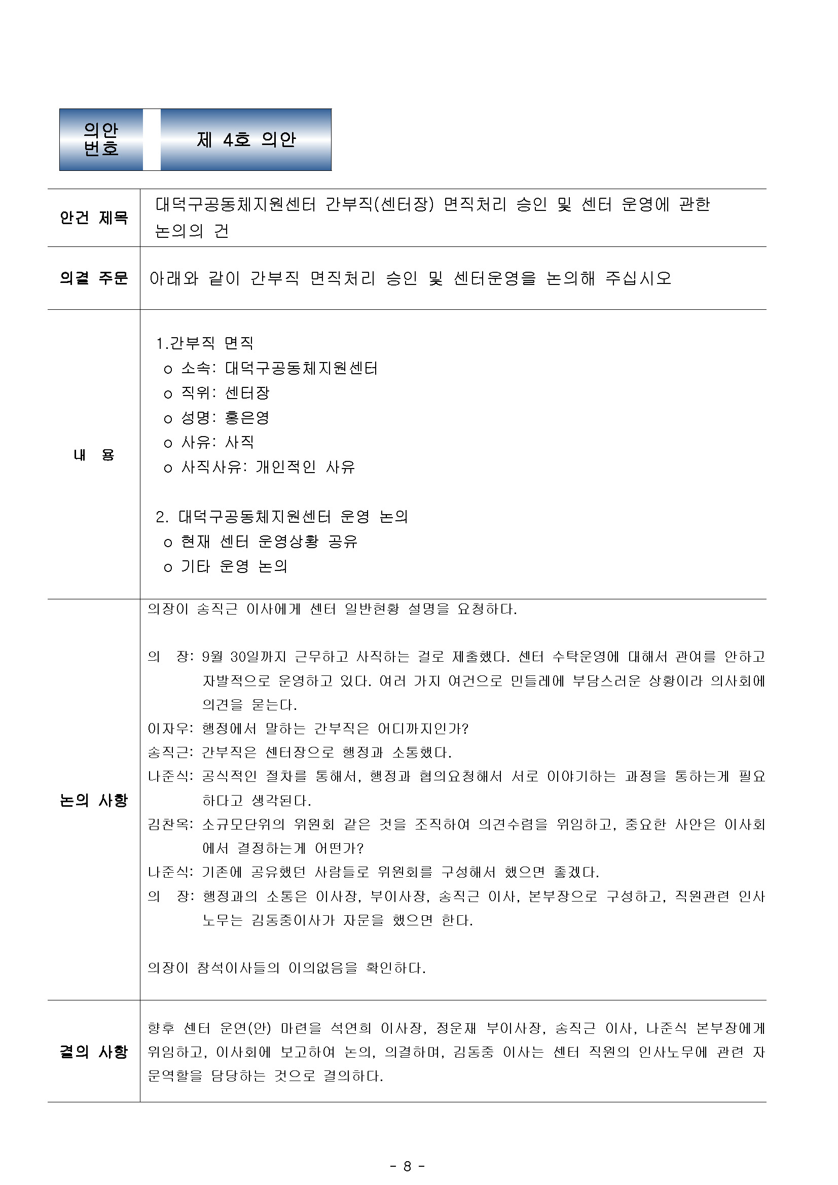 [2022-08] 정기이사회 결과보고