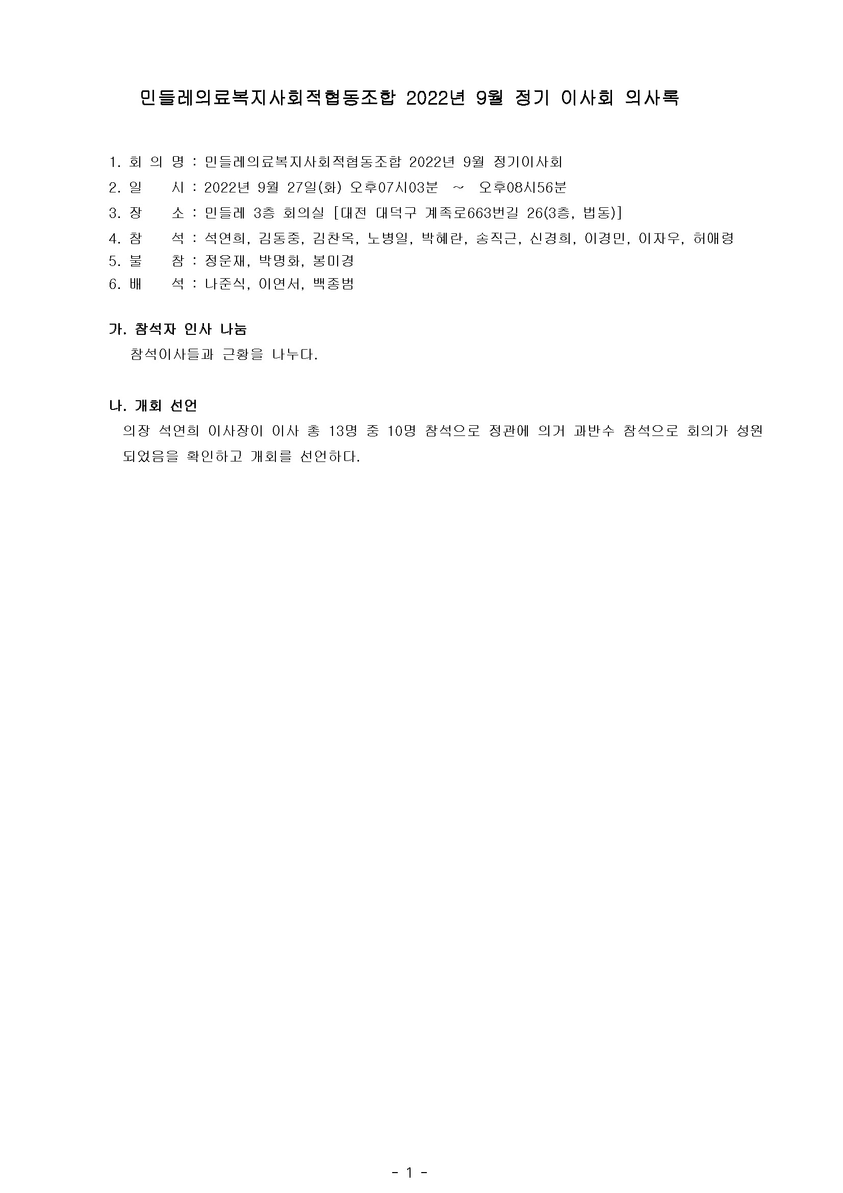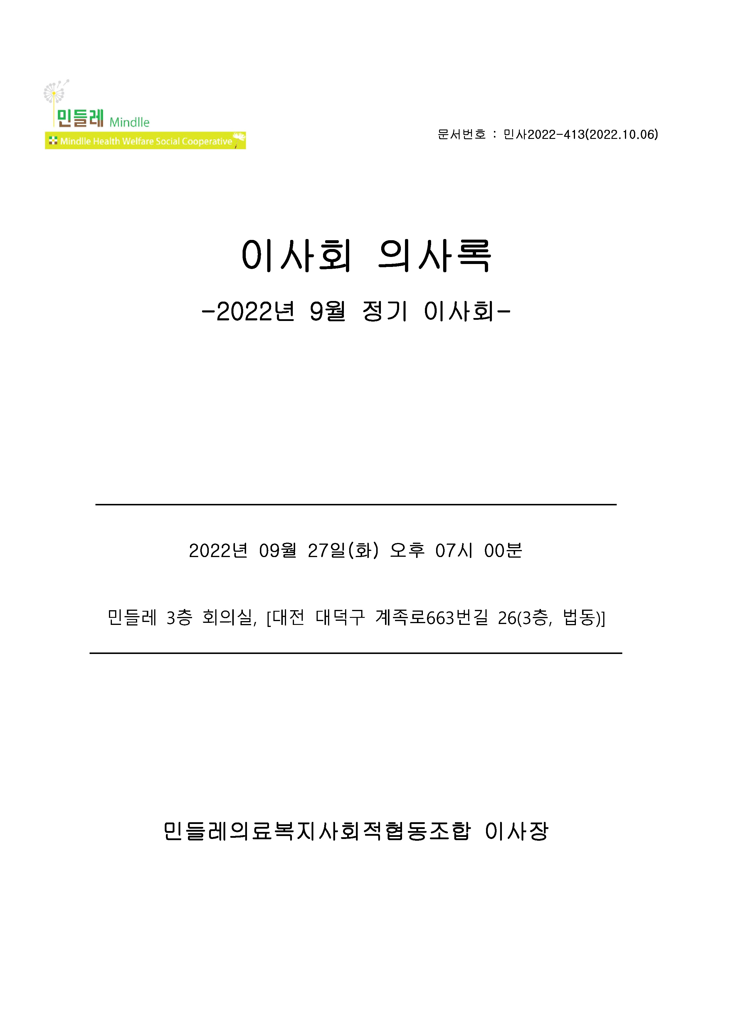 [2022-09] 정기이사회 결과보고