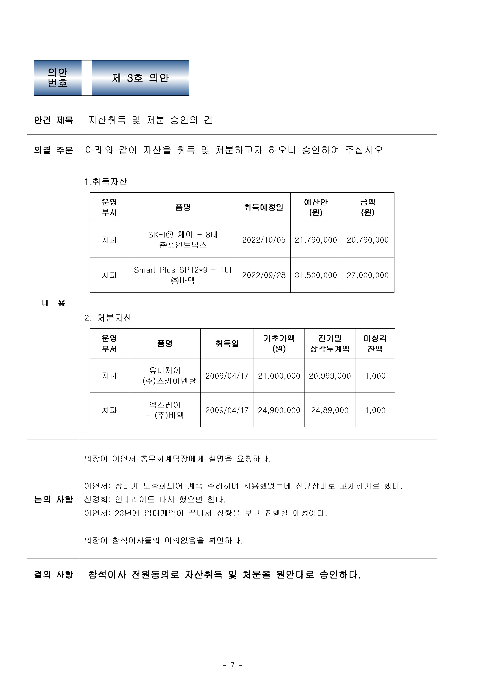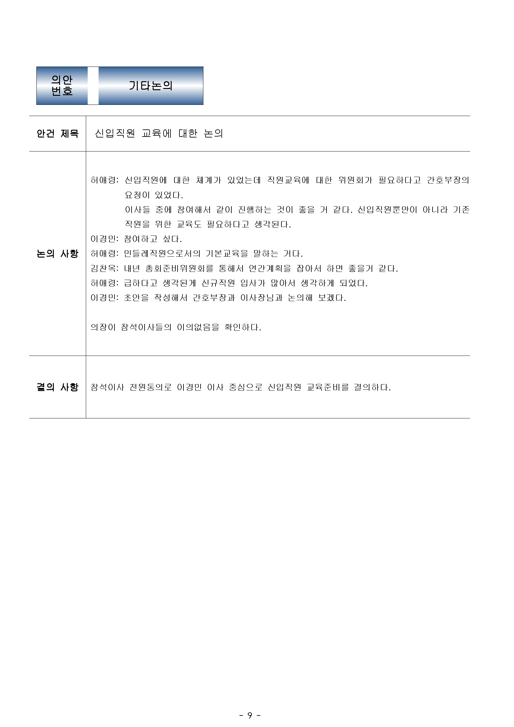 이사회회의록