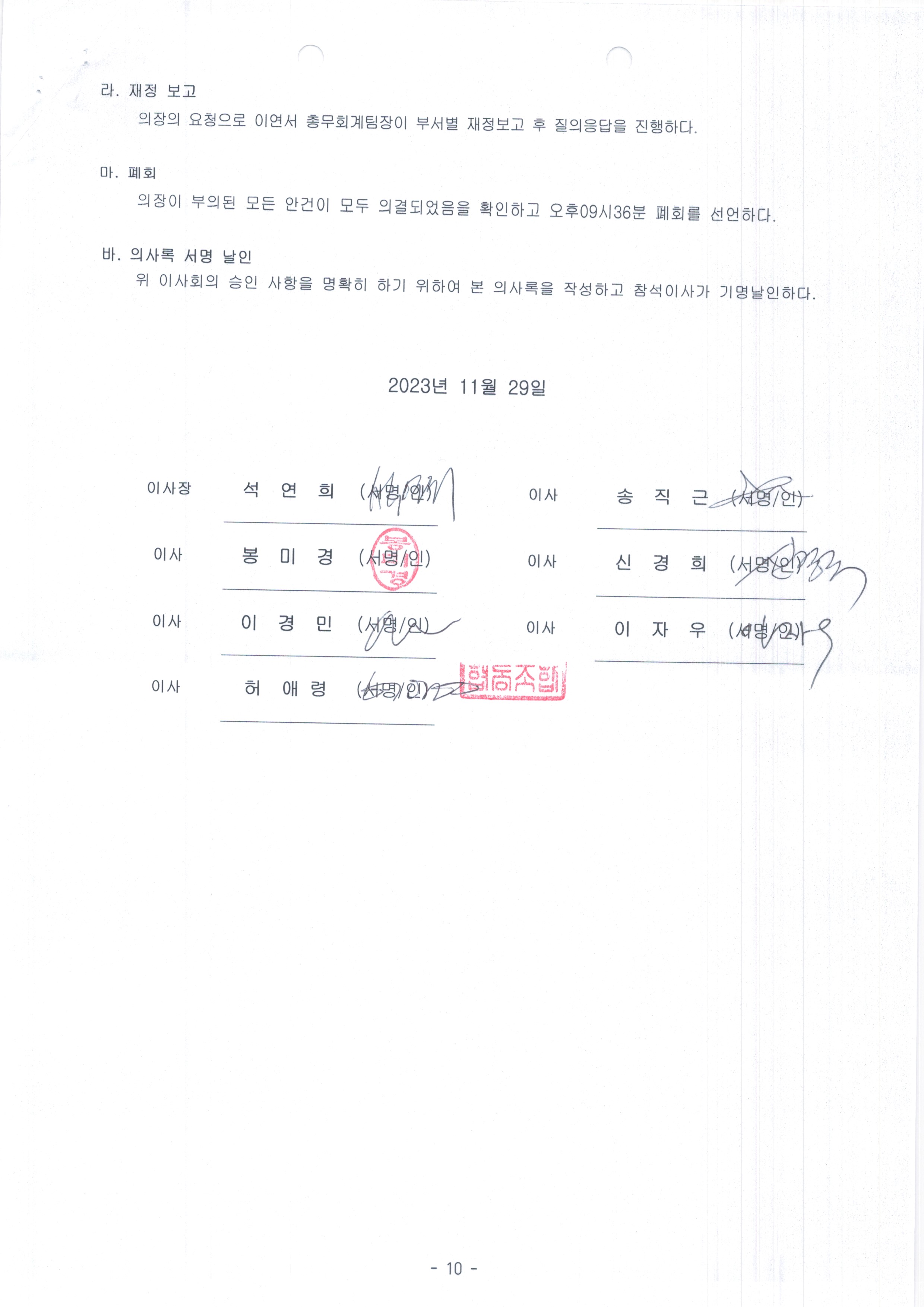 [2023-10] 정기이사회 결과보고