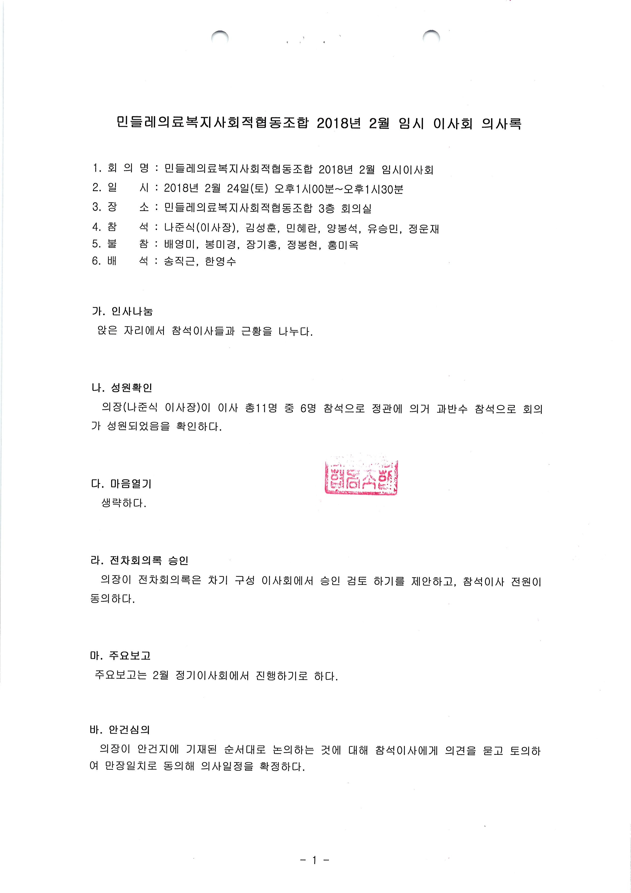 [2018-02] 임시이사회 결과보고