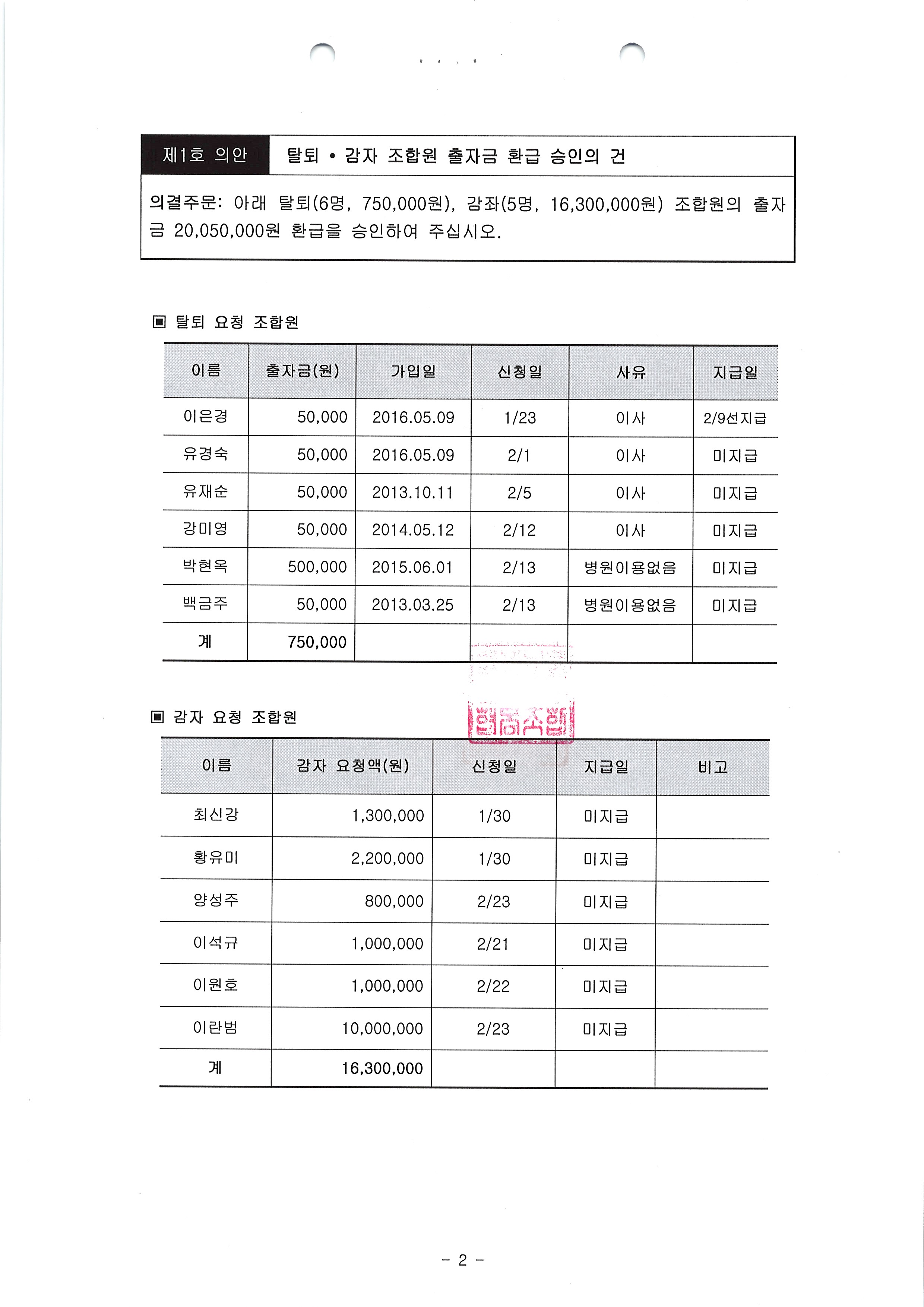 탈퇴 및 출자금반환 신청