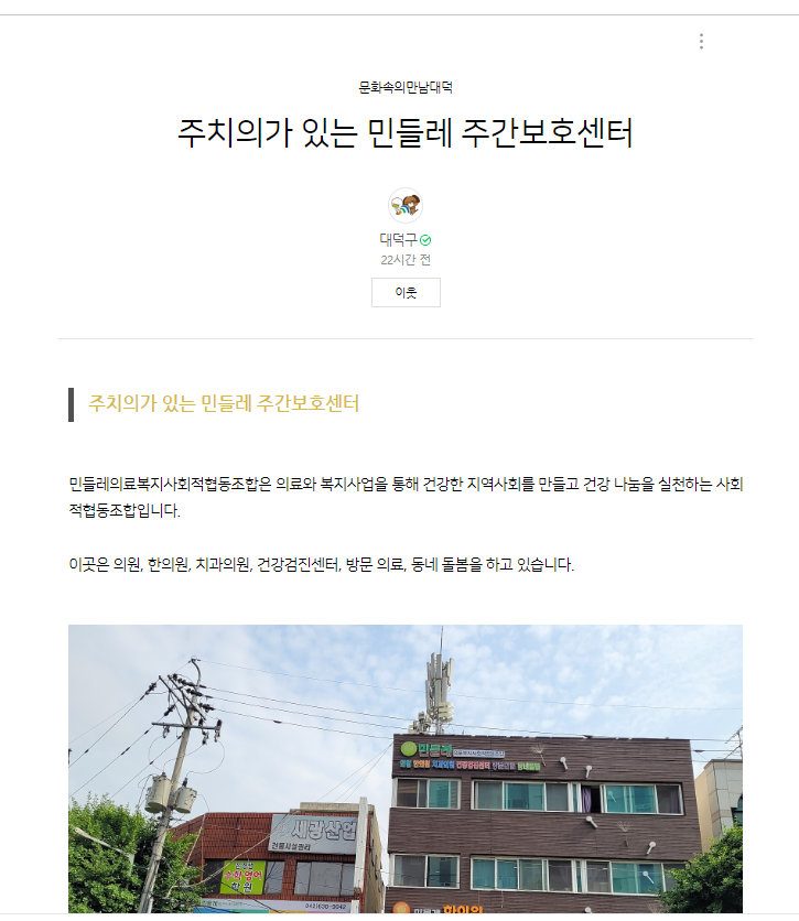 [대덕구 블로그] 주치의가 있는 민들레주간보호센터