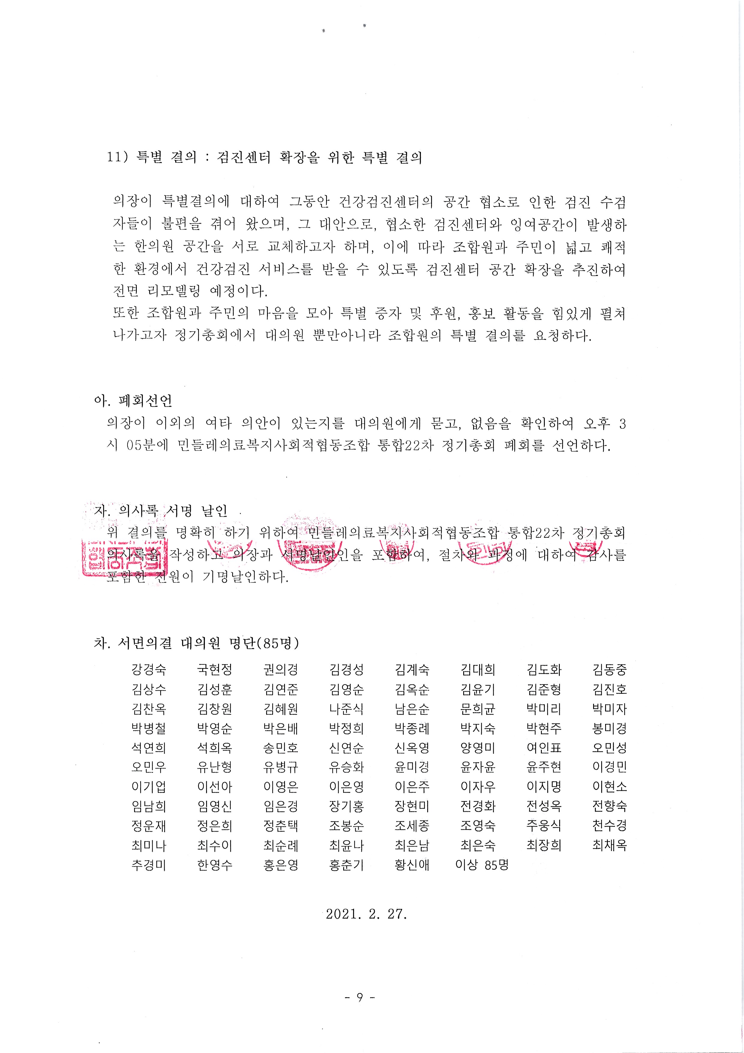 통합22차 정기총회의사록(2021.02.27)