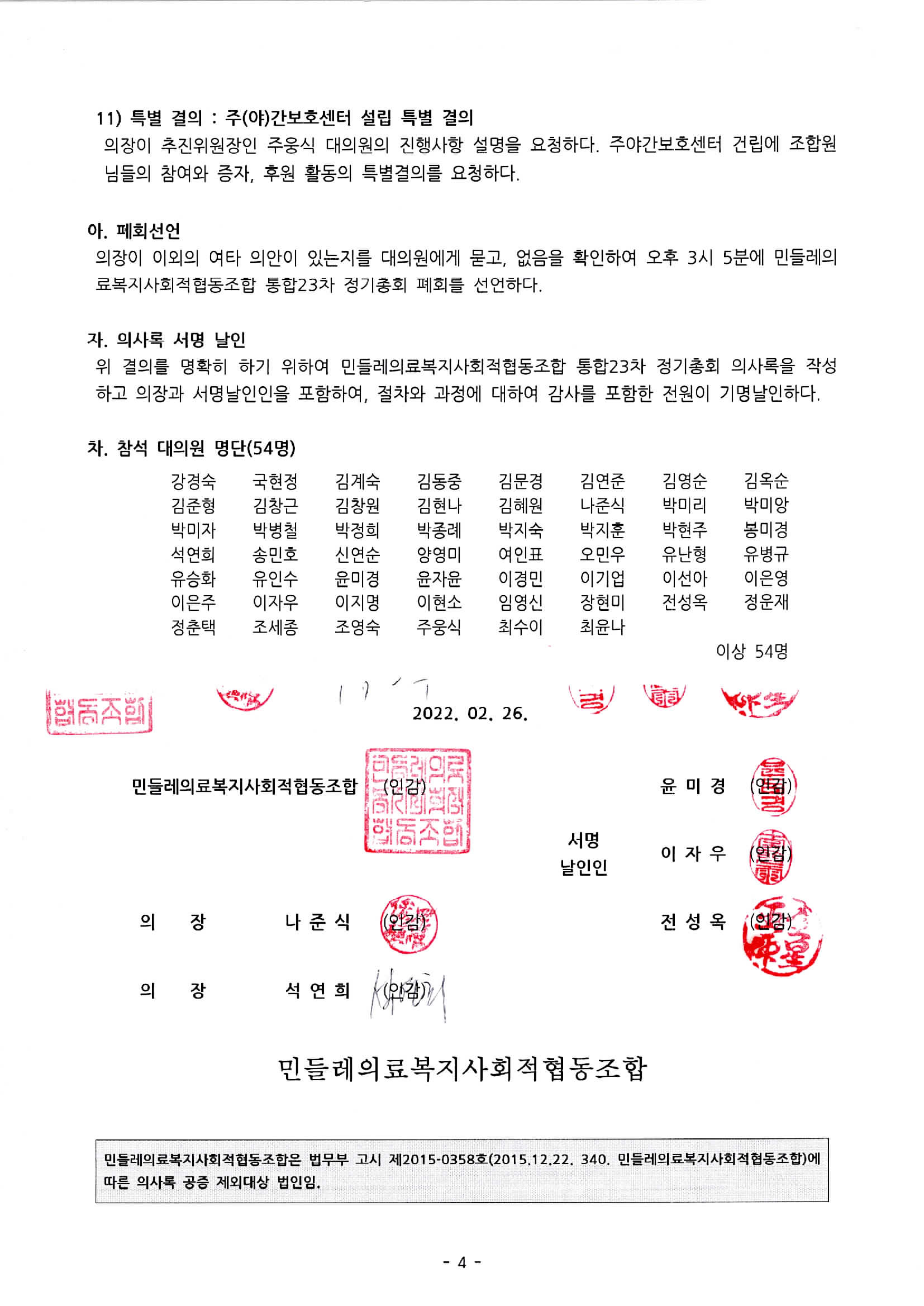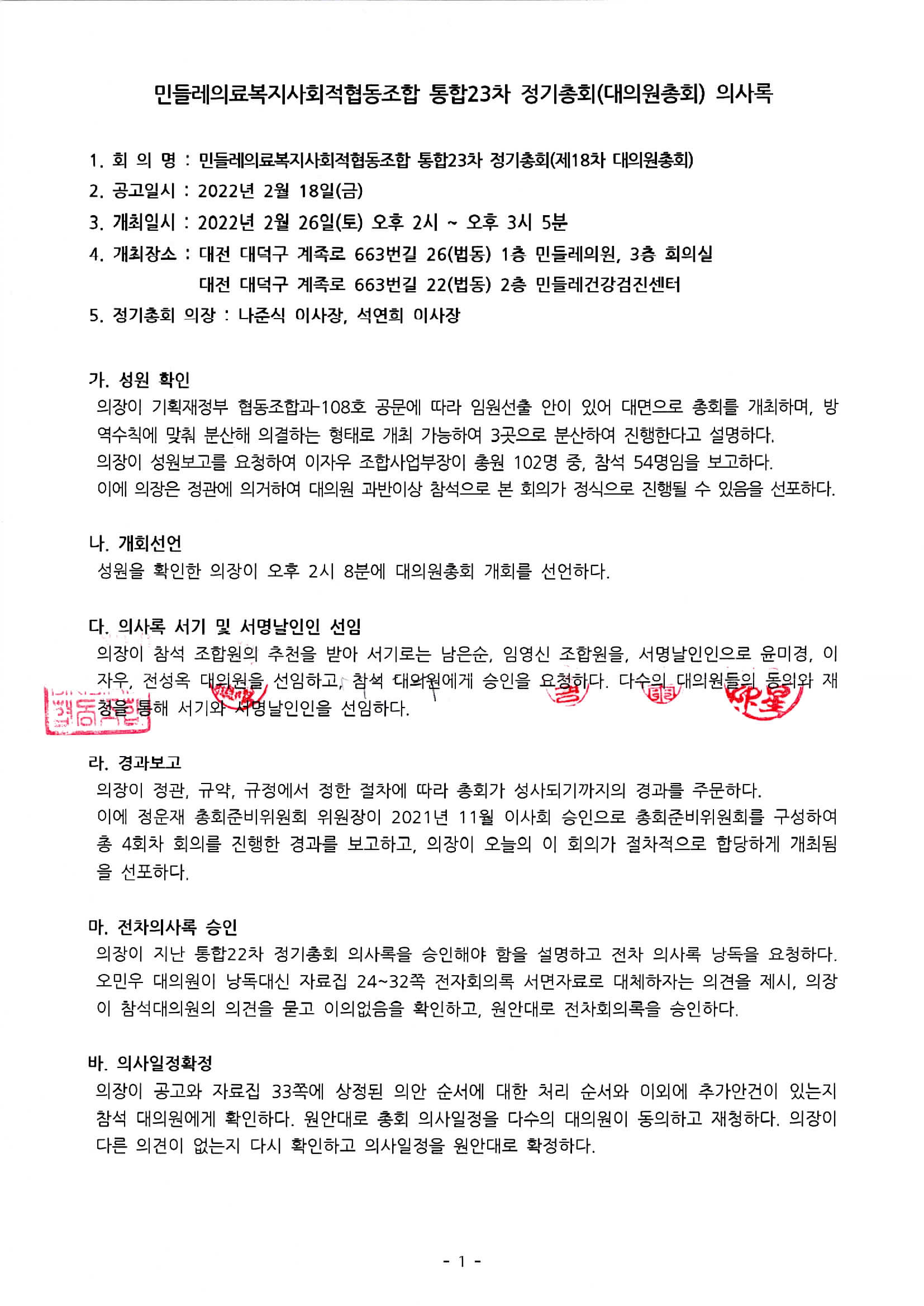 통합23차 정기총회의사록(2022.02.26)
