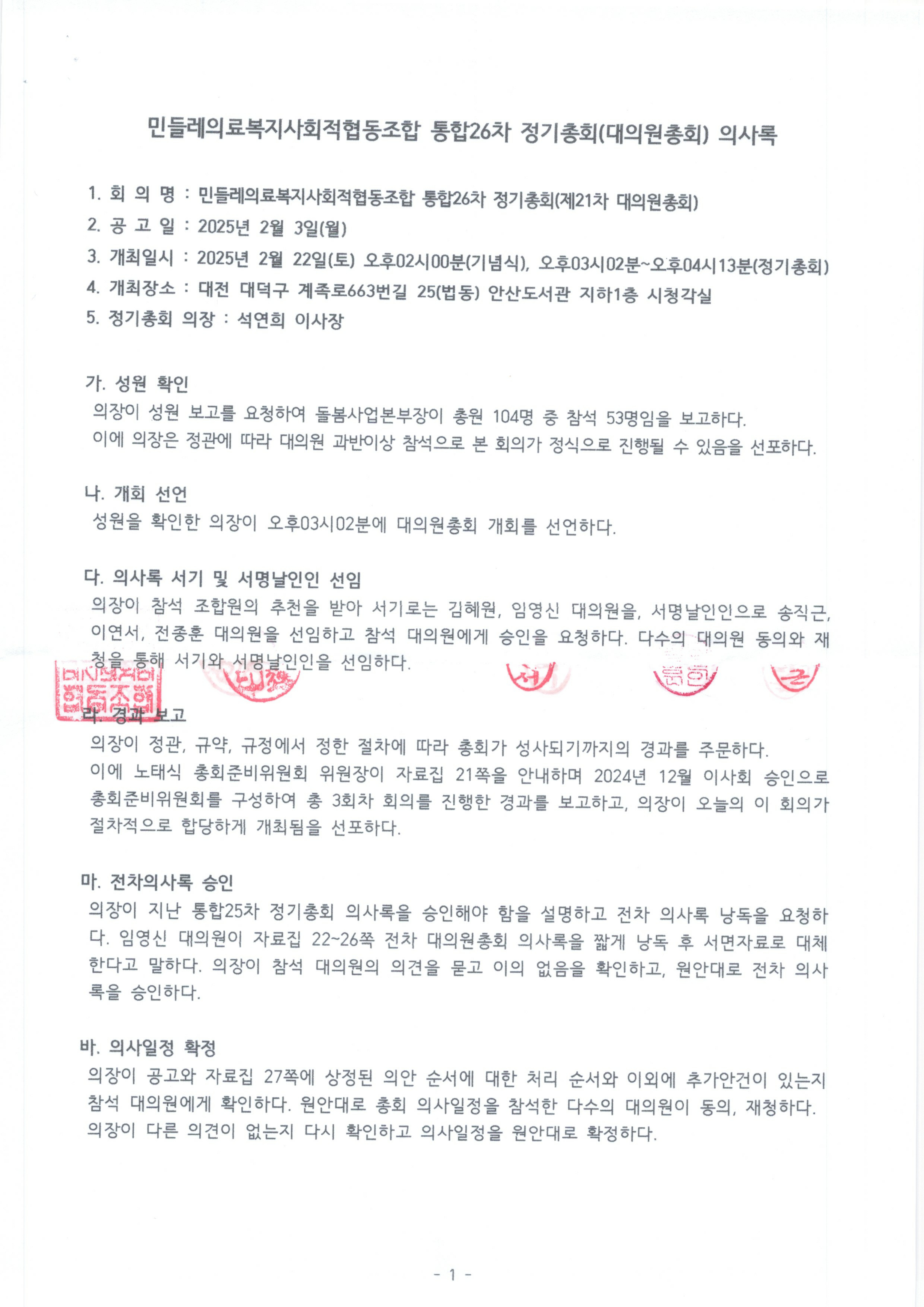 통합26차 정기총회의사록(2025.02.22)