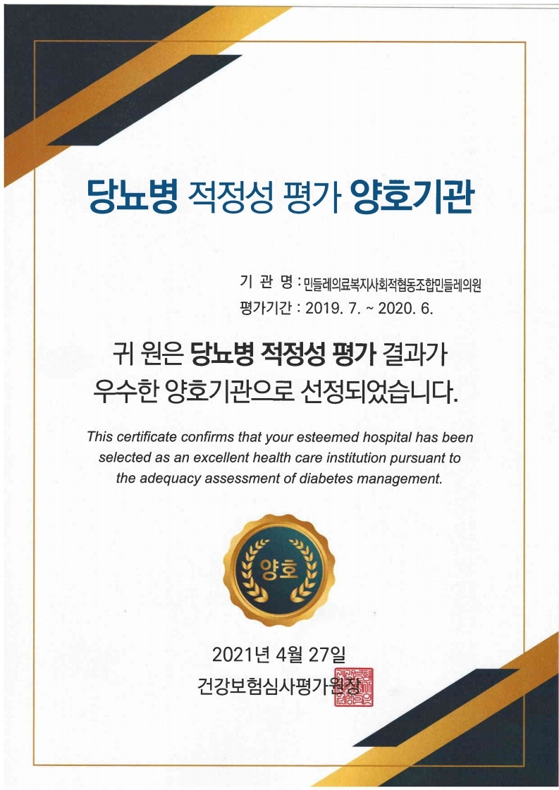 민들레의원, 만성질환 관리 양호기관으로 선정