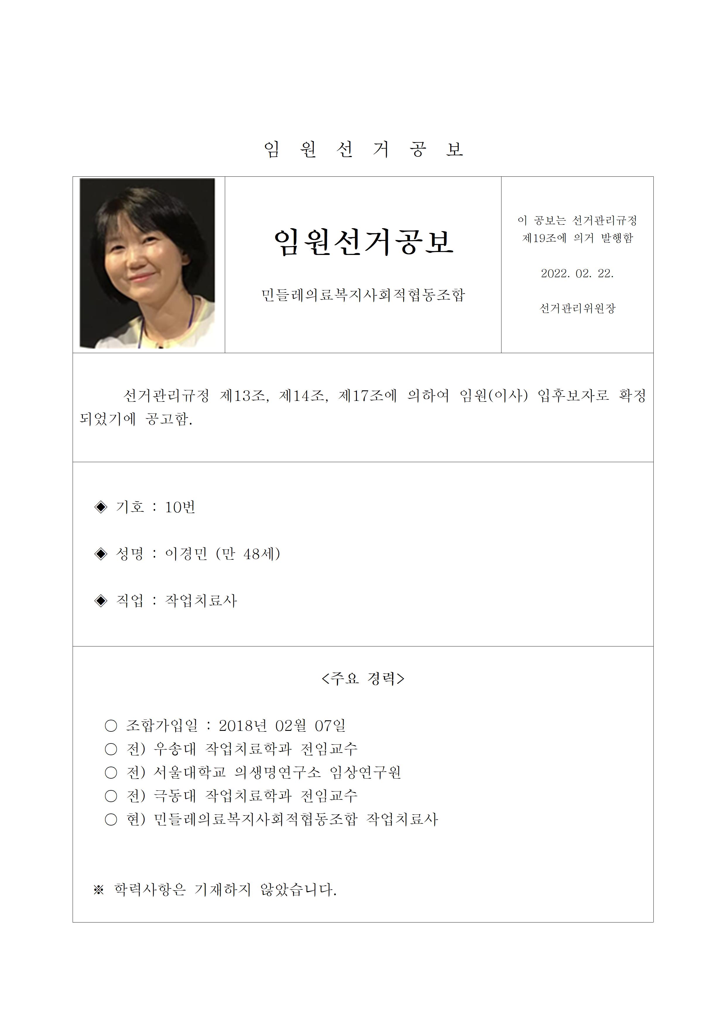2022년 민들레의료사협 임원(이사, 감사)선거 공보