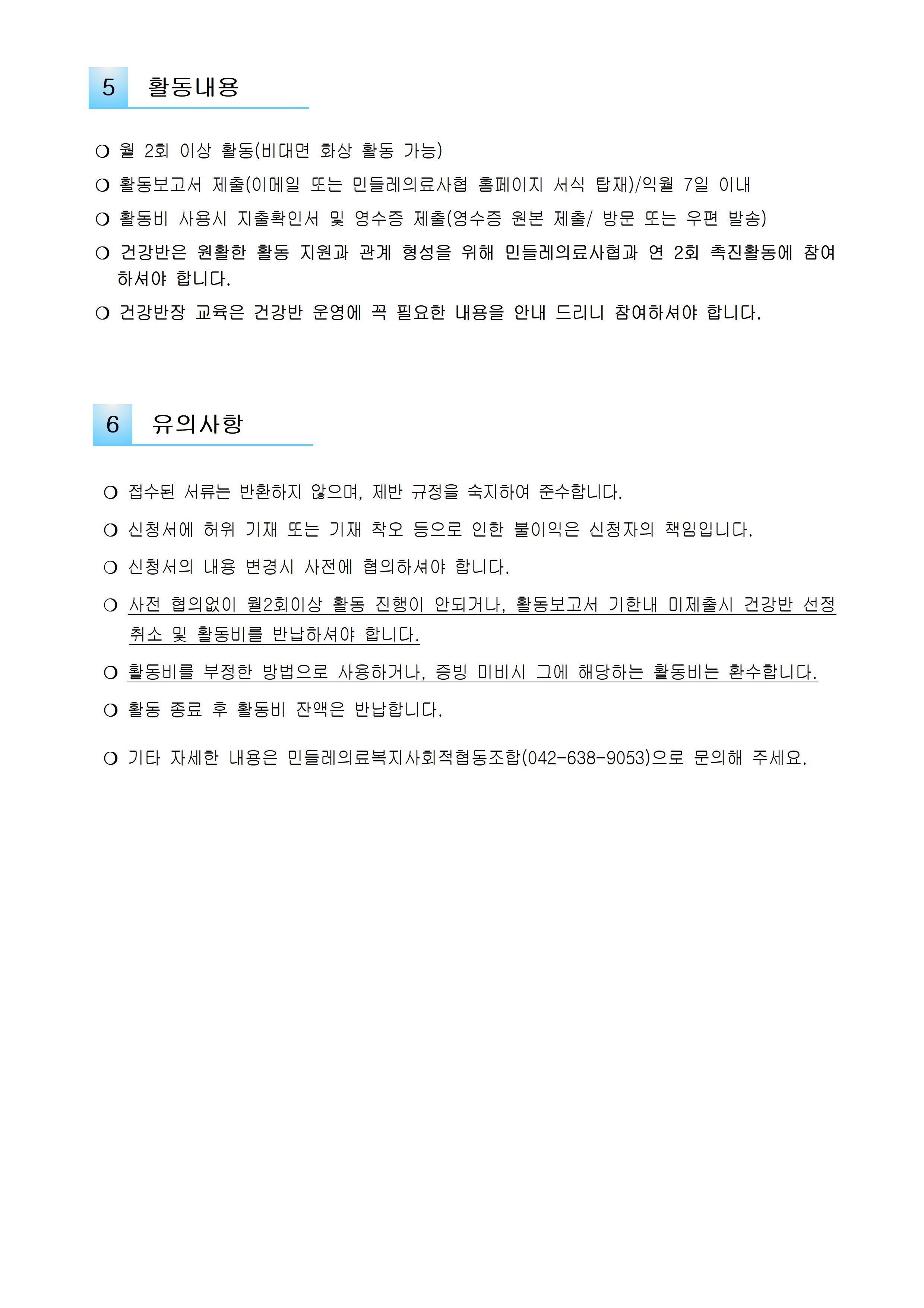 2022년 민들레의료복지사회적협동조합 '건강반' 모집