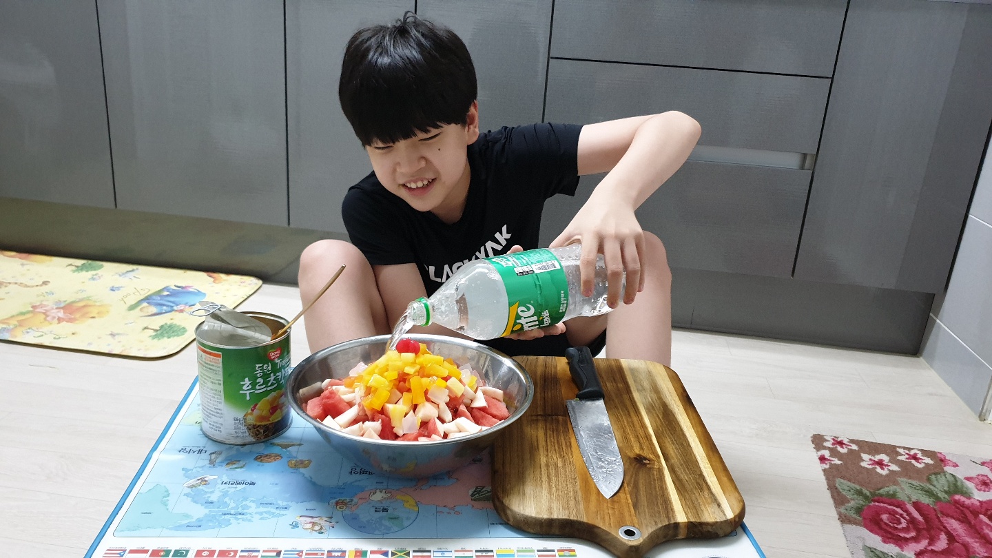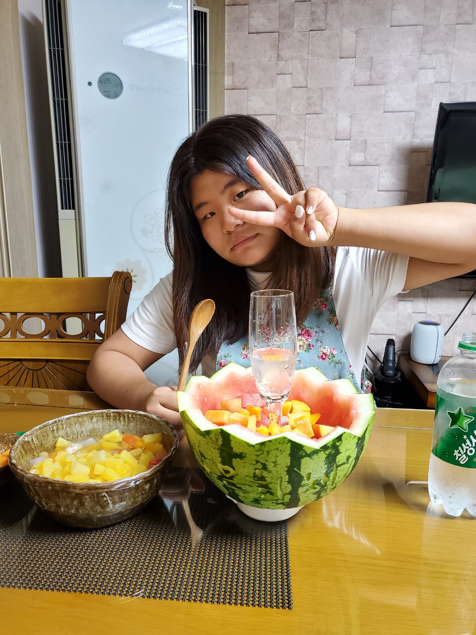 가장 덥다는 중복입니다. 아이들과 함께 시원하게 먹을 수 있는 수박화채 만들기 시간을 가졌습니다. 같이 모여서 하면 좋았겠지만 각자 집에서 아이들과 함께 만들었습니다. 아이들은 사이다만 넣은것이 더 맛나다고 하네요. 어른들은 우유를 약간 넣은 것에 한표를 주었습니다. 더운 여름 모두 건강하게 나길 기원합니다.