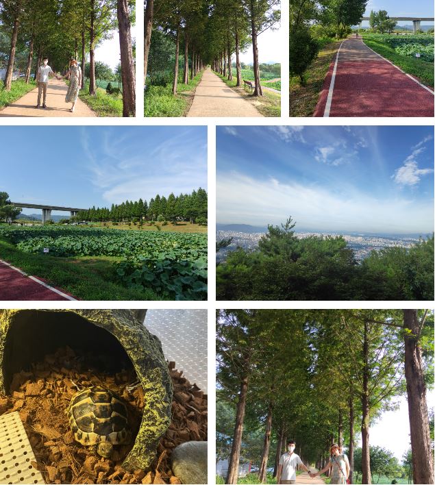대전 동구 윗말뫼(더리스 인근) → B지구 → “슬픈연가”드라마 촬영지 → 전망 좋은 곳→ 가래울 → 교촌 → 대청호 자연생태관 까지