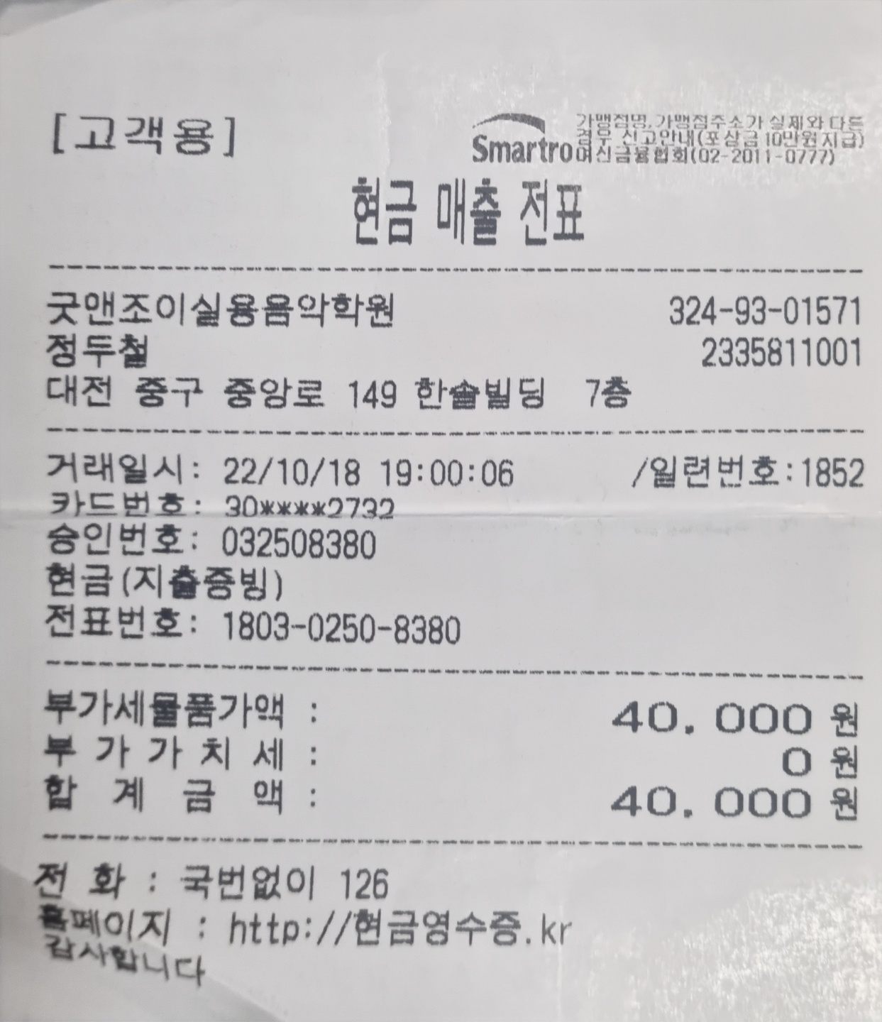 굿앤조이실용음악학원 / 2022.10.18 / 연습실대여 / 40,000원