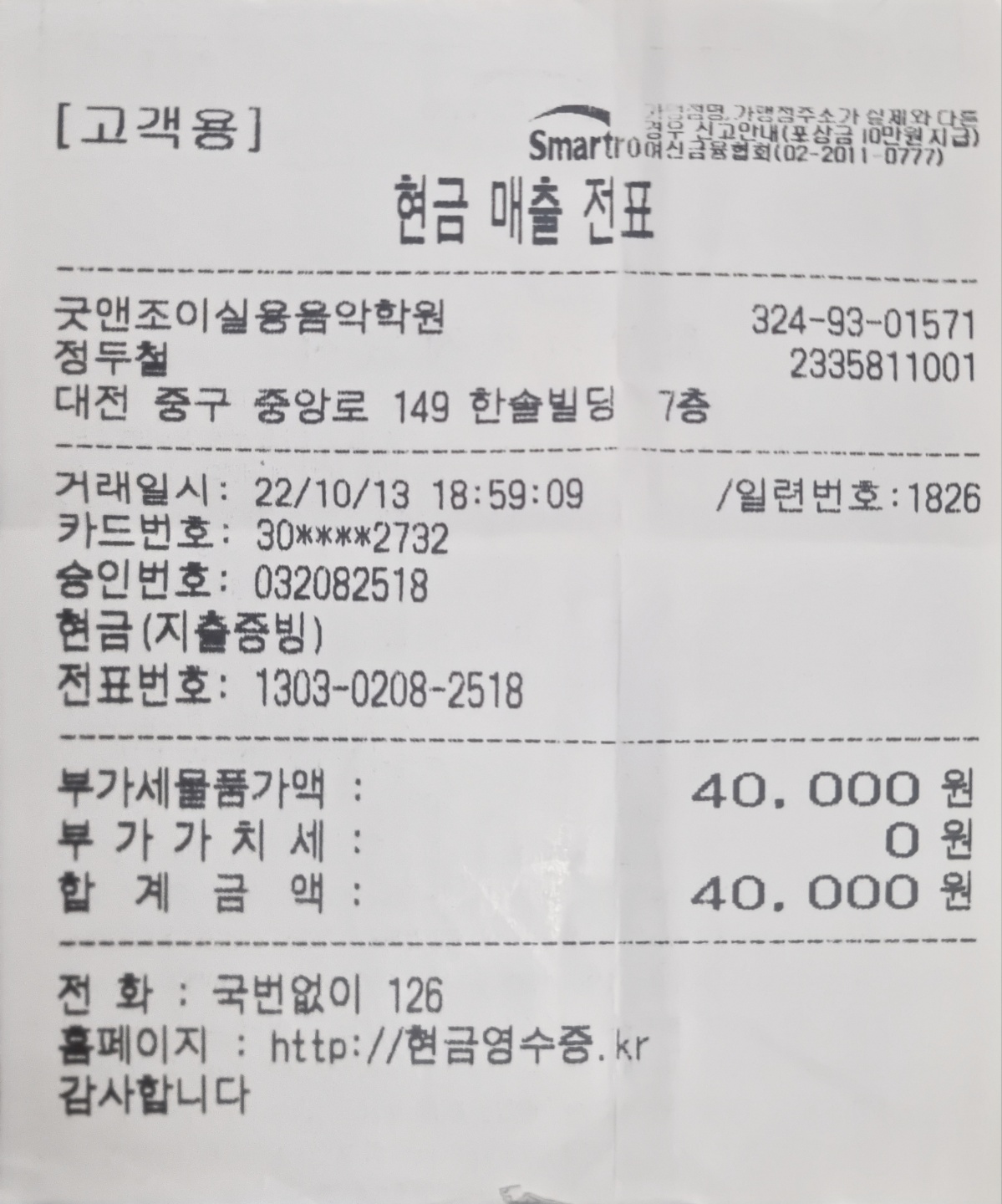 굿앤조이실용음악학원 / 2022.10.13 / 연습실대여 / 40,000원