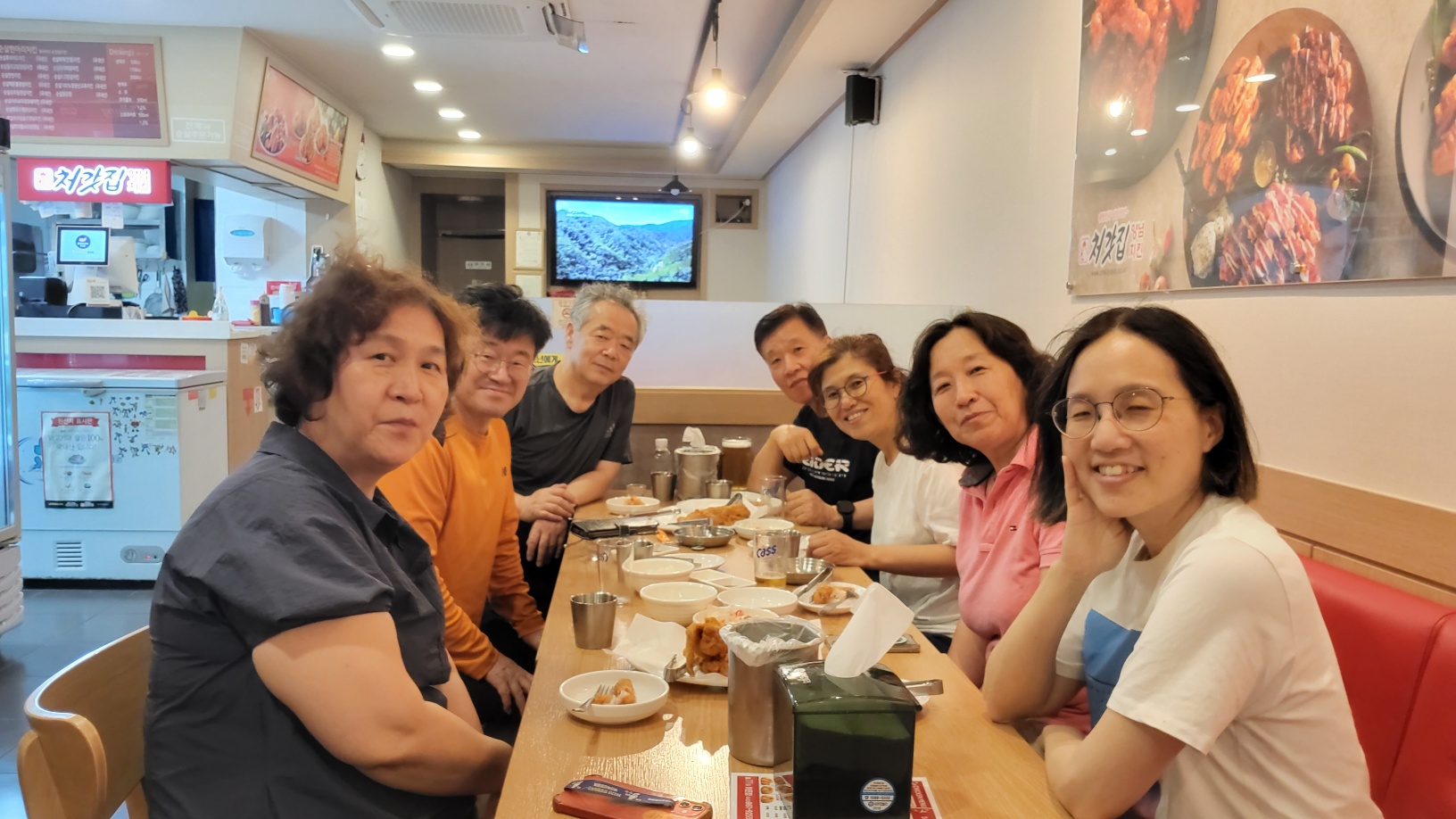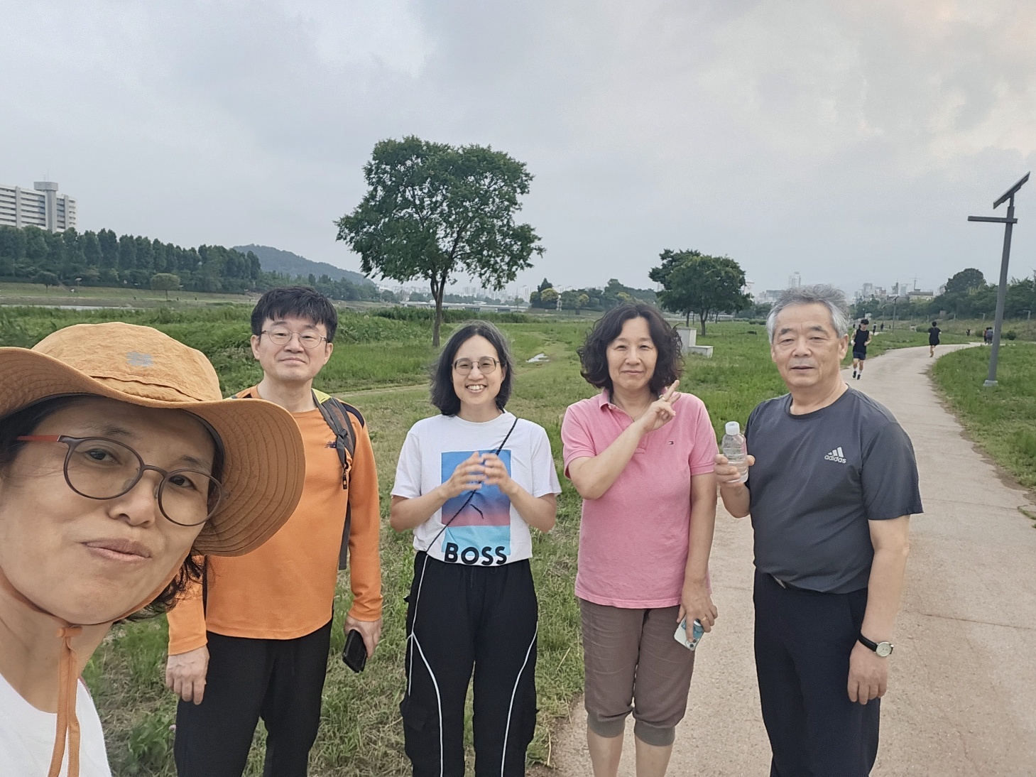 한낮에는 무더위가 기승을 부리고, 밤에는 열대야가 심신을 지치게 하는 초여름의 날씨속에서 우리는 하나가 되어 유림공원을 걷기로 하였습니다. 공원속 풀벌레 소리를 들으며, 가로등불을 밟으며, 불어오는 강바람과 속삭이며 함께 걸었습니다. 땀으로 젖어들었지만 마음속에는 더위와 싸워 승리했다는 자신감도 생겼으며 함께하였기에 깊어져가는 초여름밤을 즐길 수 있었습니다. 걷기를 끝내고 화기애애한 분위기 속에서 음료, 과일등을 나누어 마시고 먹으며 체력을 보충하고 화합의 시간을 갖었습니다.